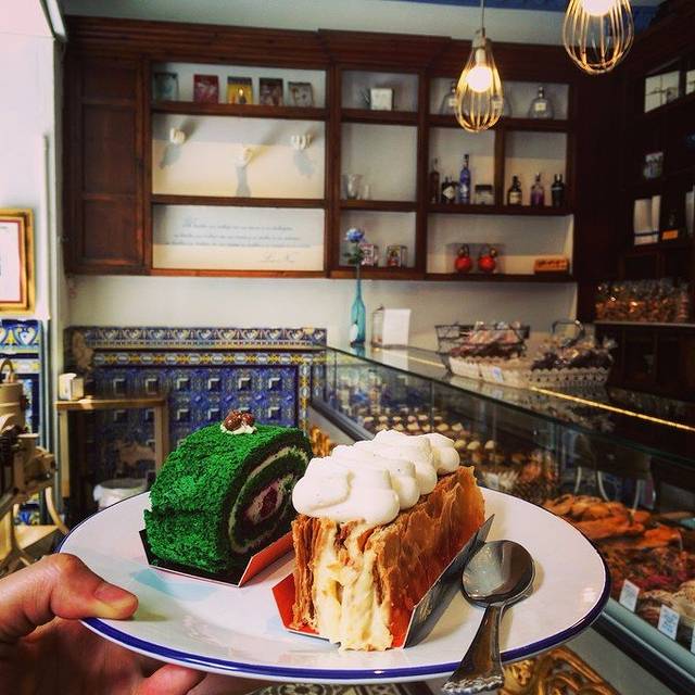 这家cafe就在塞维利亚主教堂(Catedral de Sevilla)一侧对面,叫什么倒忘记了。反正是老牌人也不少,也蛮多当地人进来买糕点的。