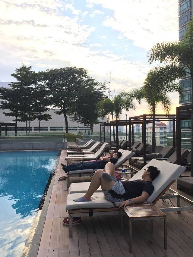 我们住宿的酒店是豪亚酒店诺维娜地铁站店,酒店非常干净,环境也很好,安静,楼下就是地铁站,出行方便,打车去各地也很近。酒店有中文服务,WIFI,泳池和健身房,还提供一部免费的手机,可以在新加坡免费用4G,拨打当地的电话,这样根本不用流量和无线蛋了。我们抵达酒店是早上7点,还不能入住,所以给了我们体育房的卡,让我们在体育房休息,另外一对直接在泳池游玩啦!在携程上定的,700多一晚,感觉很棒。