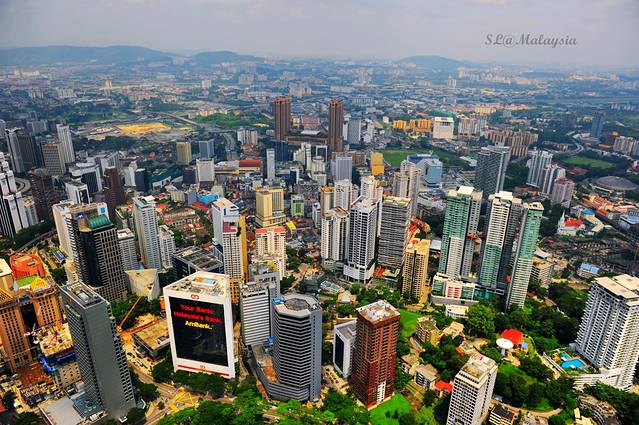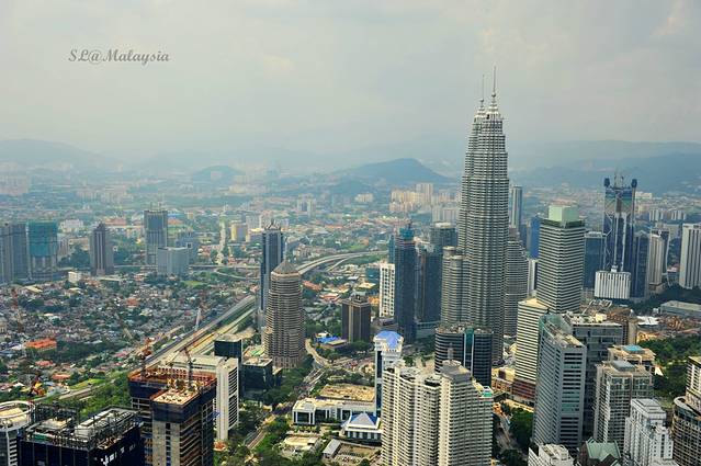 特意到吉隆坡塔观赏市区的全貌,不知是否是周末的缘故,上塔的人很多,大约排队不到半个小时,吉隆坡塔的观光层有2个,高矮有所区别,这两个观光层之间有个旋转餐厅,个人没有去最高的观光层,但误打误撞进入大了旋转餐厅,这边除了自助餐,也是观景的好去处,个人认为要比低一点的观光层景观要好很多,因为这层有向外突出的玻璃,可以有更多角度可以拍摄城市全貌。