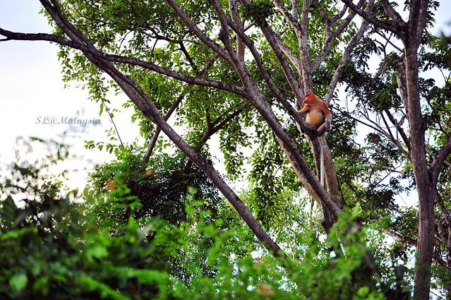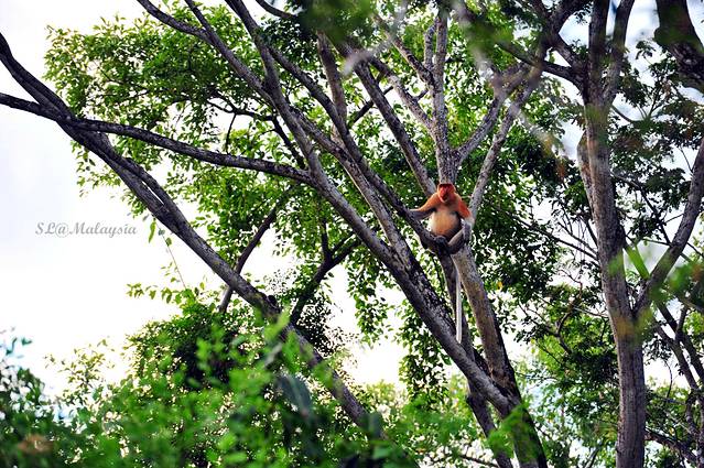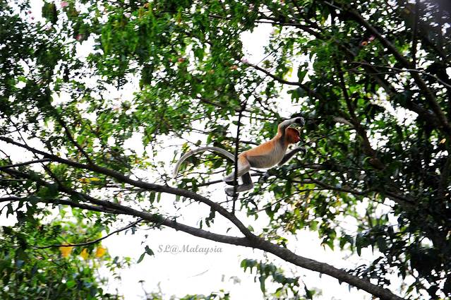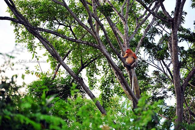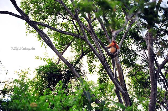 用过下午茶后,一行人开始坐上一搜乘坐20多人的小船,开始寻找长鼻猴的踪影。向导带领着,看到长鼻猴便会将船滑近,并让不同角度的人可以看到树枝上的可爱的动物。