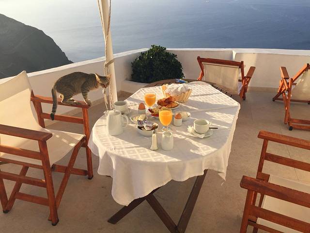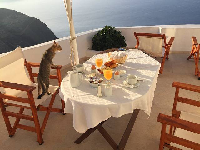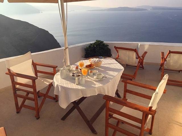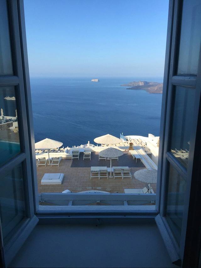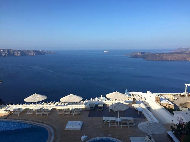 强烈推荐!!圣岛第一印象就是在这家酒店产生的。180度无敌海景,完美落日,服务人员热情干练,虽然离Fira镇还有一点距离,胜在人少,安静。其实根本就不用出酒店,在泳池边,一杯香槟一本书,看着爱琴海平静的海面,一整天都可以这样度过。