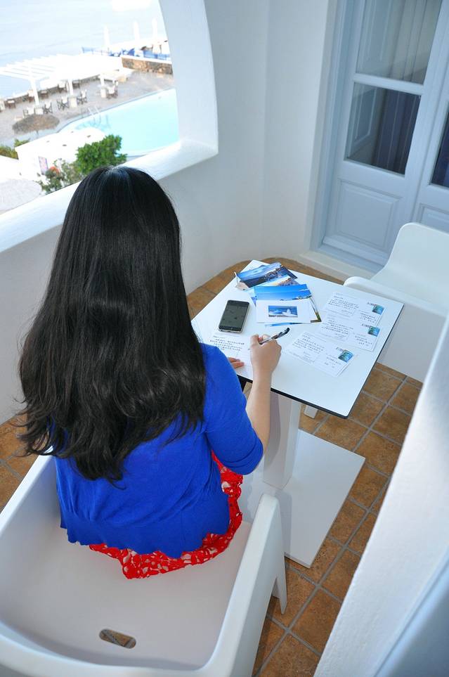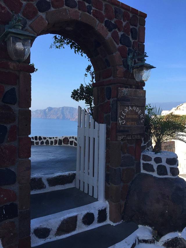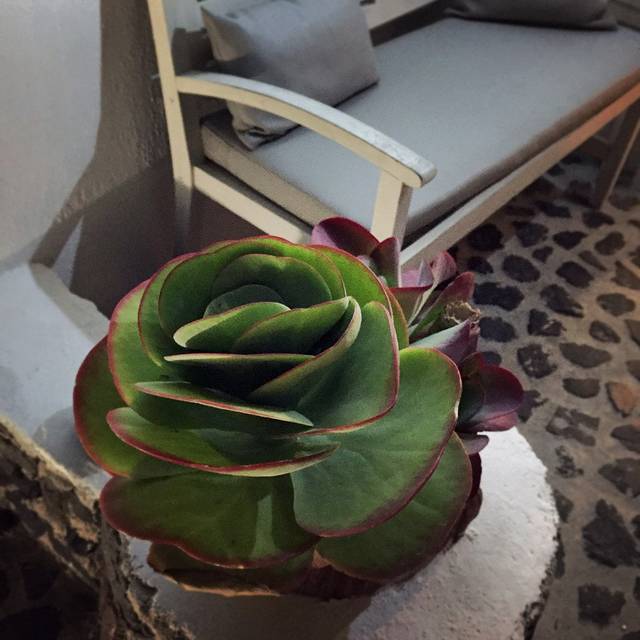 这个酒店就在Oia小镇的入口,非常好找。印象最深刻的就是满满一花园的多肉,如果要看海景建议下去泳池,房间只能看到一