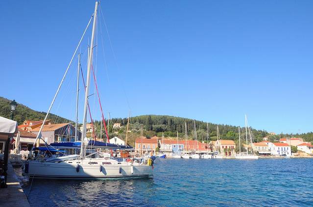 Fiscardo 是一个特别小清新的海港小镇,一边是停泊了许多游艇船只的港口,一边就是出海口。