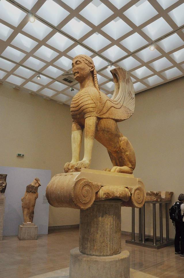 德尔斐博物馆镇宅之宝二——斯芬克斯像。传说这只神兽是停在高耸入云的柱子上,注视着、守卫着大地的一切。