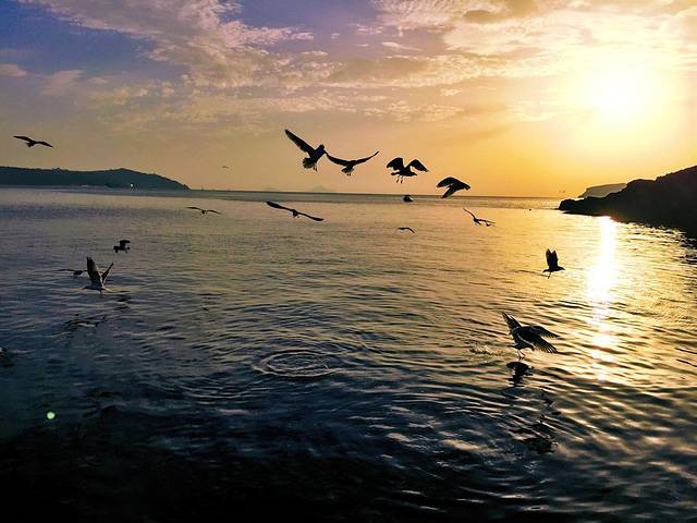 中午的阳光正好,光斑星星点点洒在海面上,晃得人睁不开眼睛,却又舍不得闭上眼睛。