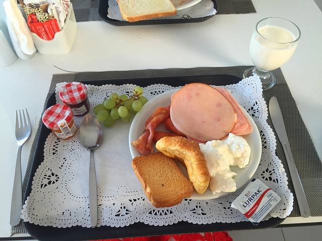 虽然是夜里出发,不过我一上飞机就睡了,飞行10个小时到多哈也不觉得很累。卡航的经济舱提供毯子、枕头、牙刷、袜子,耳塞和眼罩,比一般的国际航班要贴心很多。