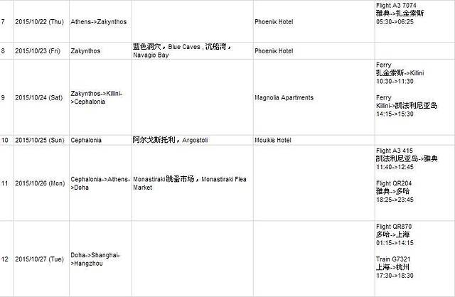 希腊国内我选择了4程机票,即雅典——圣岛,圣岛——雅典,雅典——扎岛,凯岛——雅典;1程船票,扎岛——凯岛,全部委托一个希腊当地的小哥买的,小哥不仅颜值高、热情又幽默,有什么问题都会耐心解答,最重要的是,收费超!级!良心价!!!我们包车跟着小哥去了不少地方,全都是希腊当地最有特色和小众的地方,一路走一路high,强烈推荐给那些像我一样没空做攻略、又不想要跟团的的人。我们后来的租车、包车、帆船巡游都是小哥搞定的。小哥有个希腊自助游的QQ群,里面都是一群志同道合的小伙伴,给了我不少建议和攻略,想要去希腊的亲们绝对需要加一下。