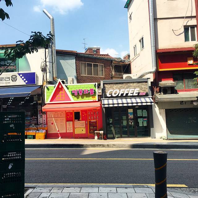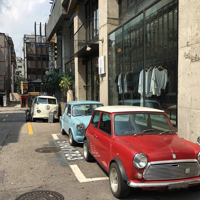 弘益大学地铁站出来就能看到一条摆了很多路边摊那种的摊位