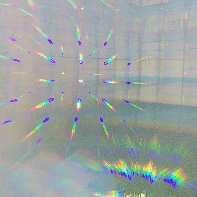 然后从玻璃盒子的外面看里面能折射出很多七彩的灯光