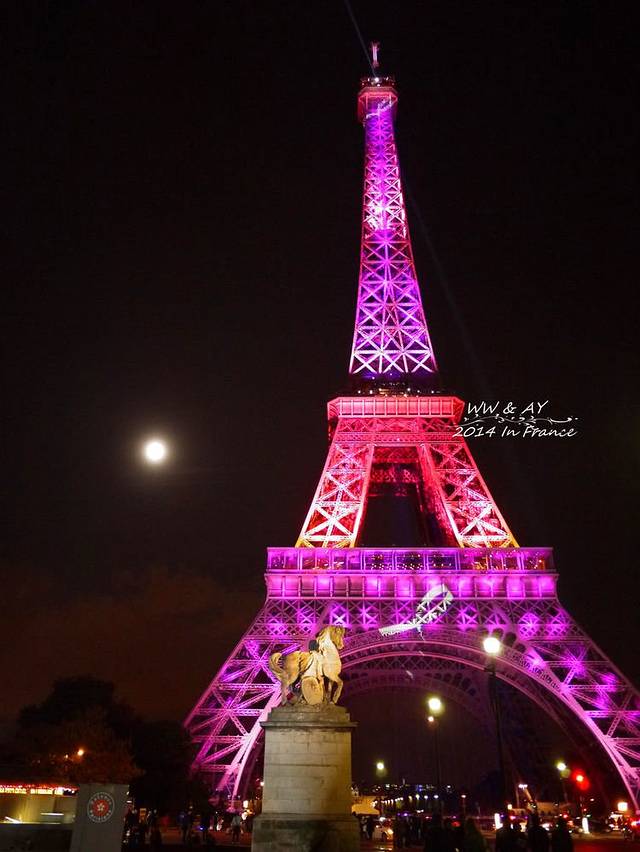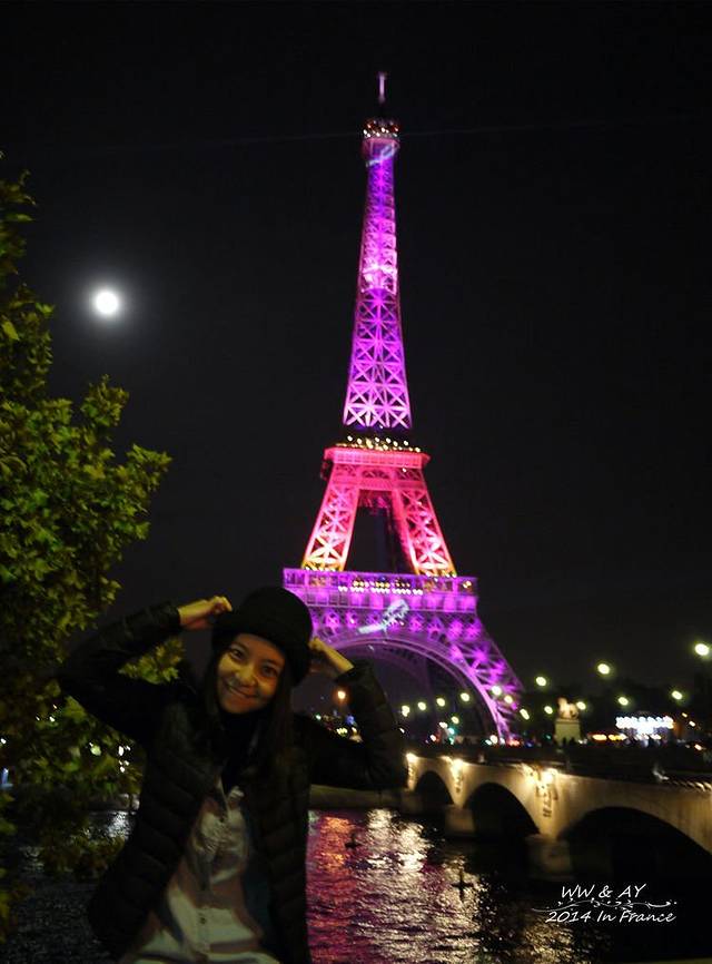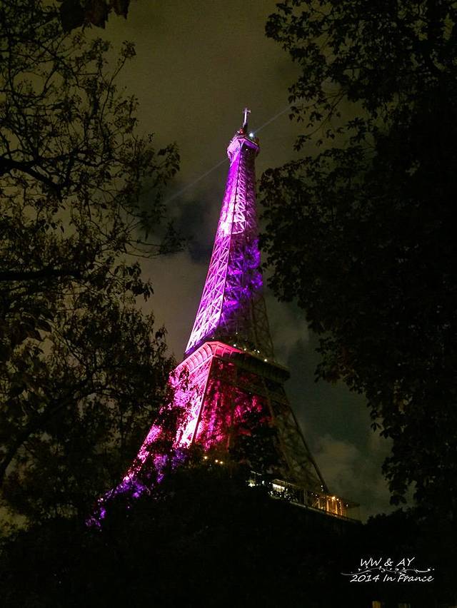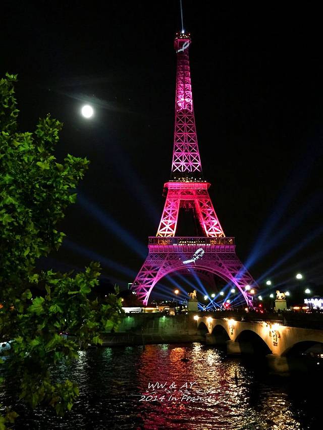 尽管N次看过夜色中的埃菲尔铁塔图片,但是当亲眼看到亮灯的第一瞬间,激动到不能自已。幸运的是,为了宣传“粉红丝带”——全球乳腺癌防治活动的公认标识,铁塔整个竟然是粉色的!