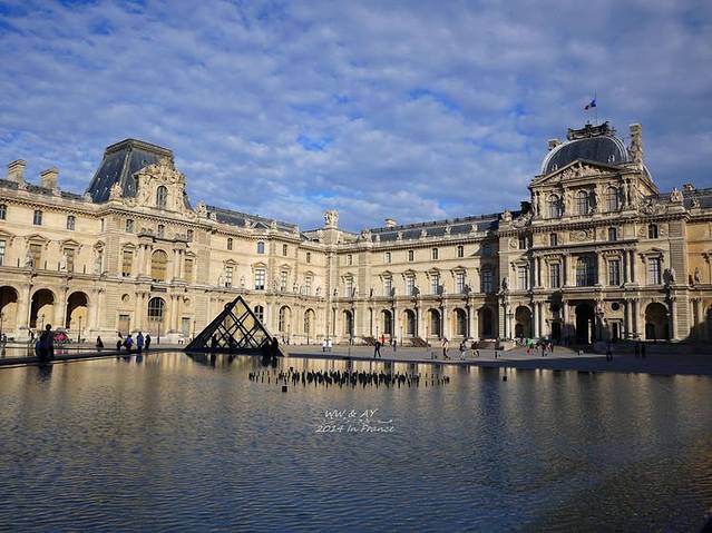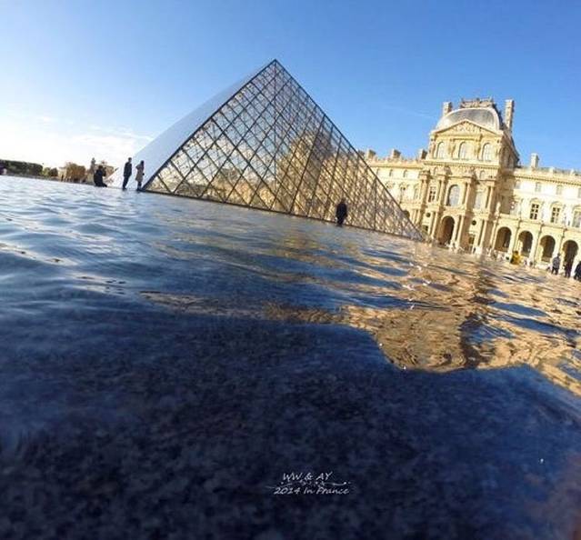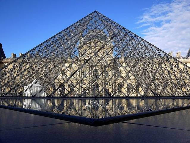 贝聿铭设计的享誉世界的玻璃金字塔,在阳光下好像一颗巨大的大钻石闪闪发光,丹·布朗在《达芬奇密码》中说过这个金字塔是由666块玻璃构成