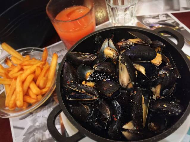 排队的人有些多,5个人的座位真心不好找。套餐一人一锅淡菜+薯条(无限量)+果汁+甜品,好像20欧左右。原味、cheese味的淡菜都非常好吃,非常非常推荐,吃的很爽。