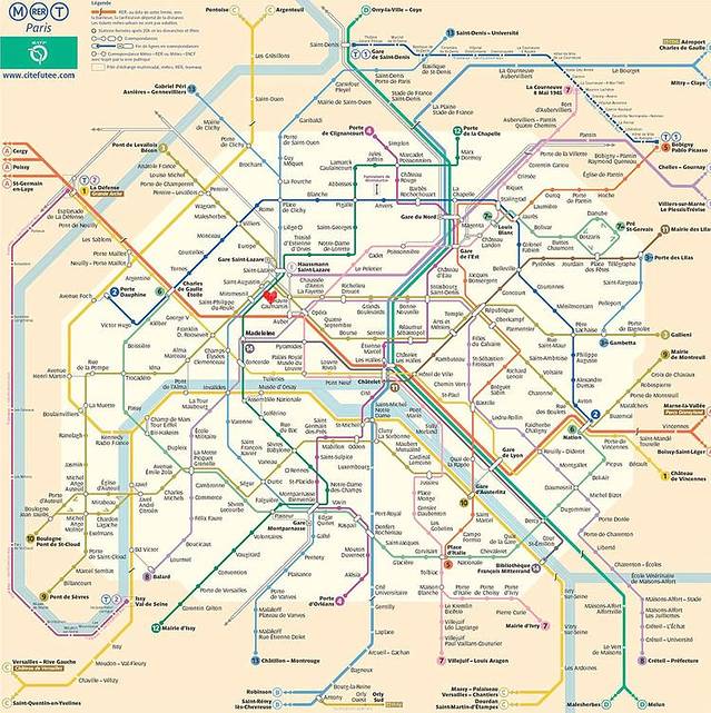 巴黎市区开车非常不推荐,就算撇开昂贵的停车费,市区堵车也非常严重,坐地铁游巴黎才是最明智的选择,巴黎地铁四通八达,而且有各种优惠票。图中标红心的就是我这次巴黎的酒店,离三个不同的地铁站都非常近。