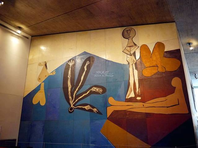 UNESCO的镇馆之作——大师毕加索创作的巨幅油画《伊卡鲁斯的陨落》。这是一个古希腊神话故事,伊卡鲁斯的父亲用海鸥的羽毛和蜡油为他制作了一副翅膀,并且告诫他不能飞太高也不能飞太低,飞得高翅膀会被太阳熔化,飞得低翅膀会被海水打湿,但是他一飞就忘乎所以了,飞的越来越高,结果翅膀熔化落入大海。