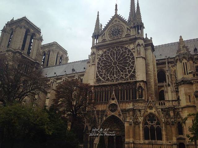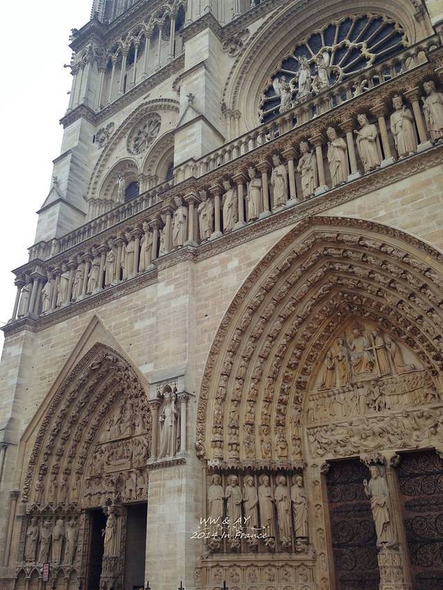 巴黎圣母院的每一侧面每个角度看都完完全全不一样,雕刻的精美绝伦,设计的无与伦比,远观壮观雄伟,近看细致美丽