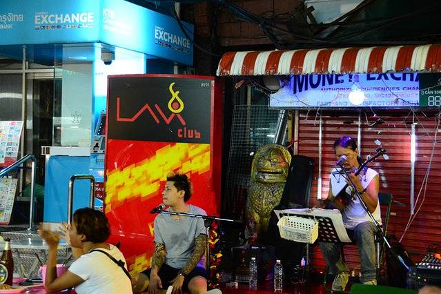 路边酒吧很多,整条街都是,基本也都是欧美人,第一天到泰国对物价没有概念,只是想感受一下这里的气氛,我们找了一个相对平和的音乐live酒吧要了两个啤酒,话说这象牌啤酒的口感,不是国内啤酒可以比,沫多香醇。价格120铢一瓶,的确是我在泰国感觉最贵的啤酒了。话说如果不是很喜欢嘈杂的酒吧环境的朋友们,完全可以忽略这个行程了。