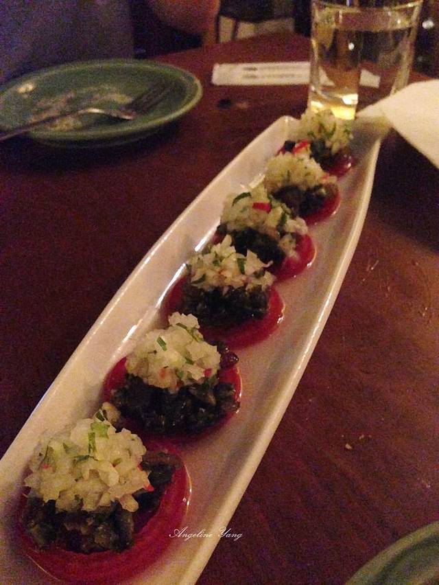 4个口味各异的烤生蚝,特别喜欢这种异国小酒馆风格的餐馆