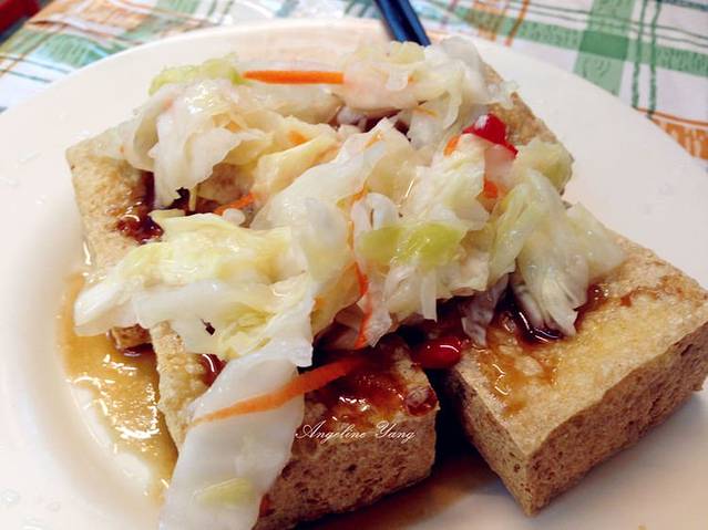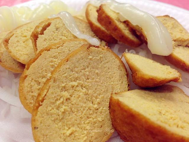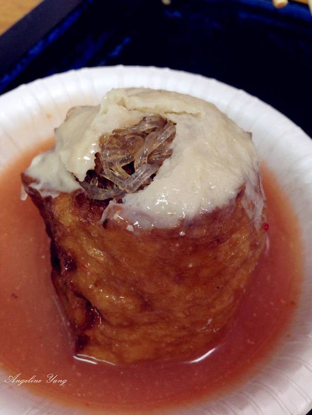 阿給——日语油豆腐的发音,外面是油豆腐,里面塞上炒好的冬粉然后再以鱼浆封口上蒸笼蒸,最后浇上酱汁。
