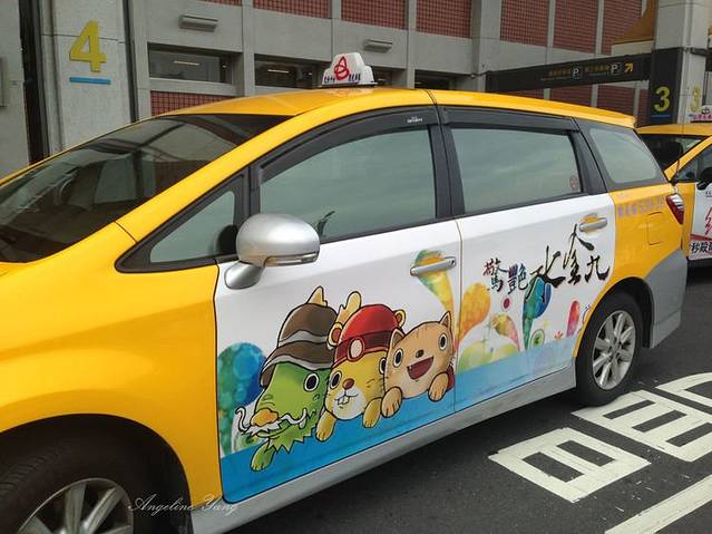 我们两个懒人不爱拎着两个箱子走路换公车再换巴士或火车去台北,直接叫了辆出租车,从九份到松山机场台币1000,九份的出租车很可爱哦