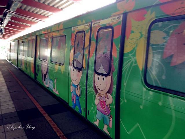 哇卡伊的列车,车上还有带电子显示屏的大木桶,可以查看北投的地图和景点,非常有特色