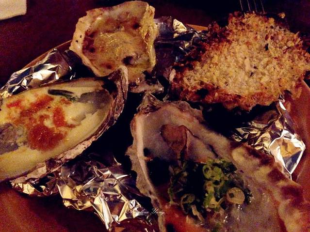 台北吃货第一站:YAYA'S 生蚝吧,喜欢詹姆士的朋友们千万不要错过,这是他开的哦。两人套餐台币1400,包括烤生蚝4只,生蚝刺身4只,奶油海鲜汤,蔬菜沙拉和一份意面。