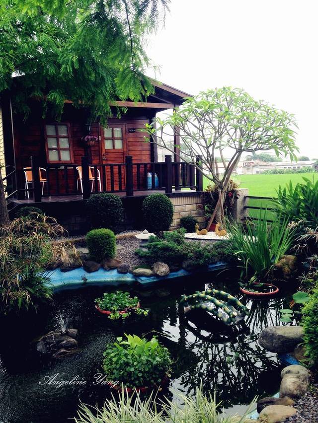 老板娘把庭院区布置的非常像迷你小公园,进口处还有一只鹅一只鸭和一群小虾,旁边的一块稻田也是他们的,台湾买房拥有的是永久土地权