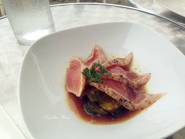 旗鱼刺身酸黄瓜佐柑橘酱,名字虽然很长很难念,不过太‼‼好吃了!