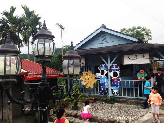 天送埤火车站——昔日的铁轨如今已成为车站前道路;昔日的繁华不再,车站孤零零的坐落于天送埤社区內,少了喧哗、少了热闹,也沒有扰人的汽笛声,一切都归于平淡,只有小朋友在旁边玩耍嬉笑