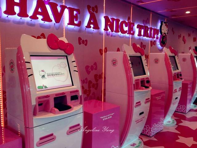桃园机场内有一块特别的地方哦,远远看去就是粉红粉红再粉红, 这是长荣和HELLO KITTY的合作专线值机台