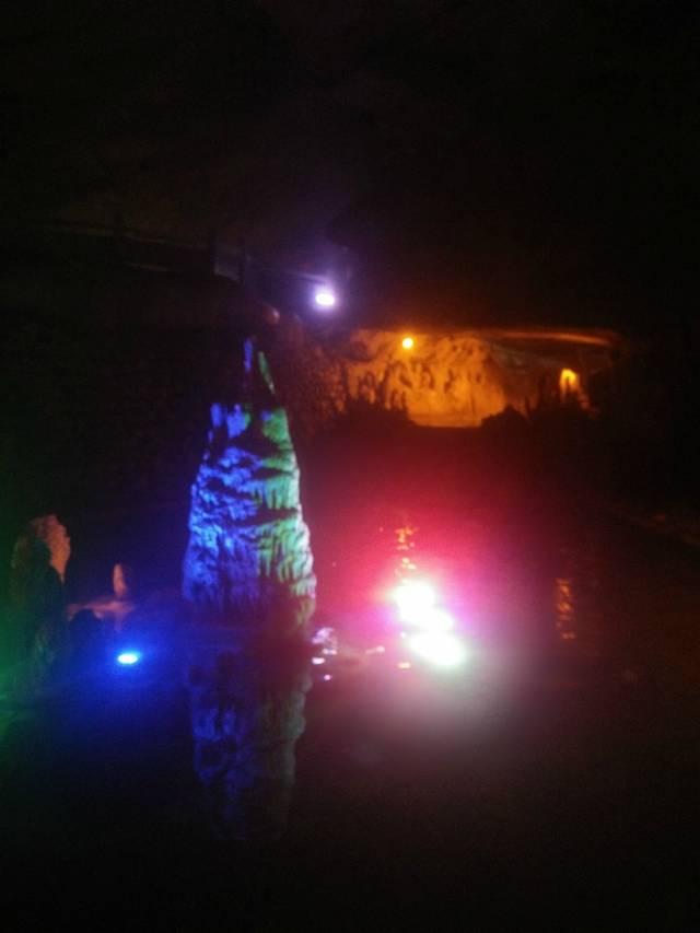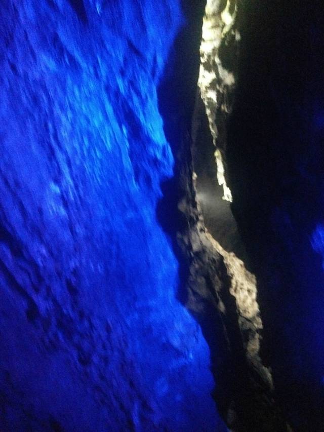 小心翼翼的坐上船后,可以看到入口处是一片小小的湖,伴着小船轻轻的晃动,在船夫的介绍下我们很快就进入了暗河洞门,一入洞内就感觉到一阵清凉,就如明代诗人杨宏称赞的一般,“夏日炎忘署,冬游却似春。源流虽一派,清白只垂云。”当然进入洞内最重要的自然是观赏它绝妙的风景,洞内钟乳石低垂,景致奇绝,沿途观赏了“垂帘听政”“一线天”等天然形成的岩石景观。不过洞内较黑,照片都比较糊,感兴趣的一定要自己去才能感受到它的奇特之处。
