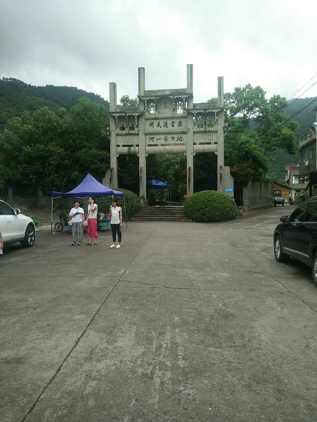 8月9号,七夕节这天,我和许久未见的朋友约好去桐庐的垂云通天河,虽然一早下起了雨,任然没有打消我们的念头。到达目的地已经是午餐时间了,我们就近选择了一家名为童琳农家乐的饭馆吃饭,两个人吃饱喝足后就开始正式游玩啦。往前直走可以就看到一块巨大的牌坊上写着“垂云通天河”,走进去就进入了景区,可以看到整个景区处在山脚下,所以绿植很多,景观也很好。