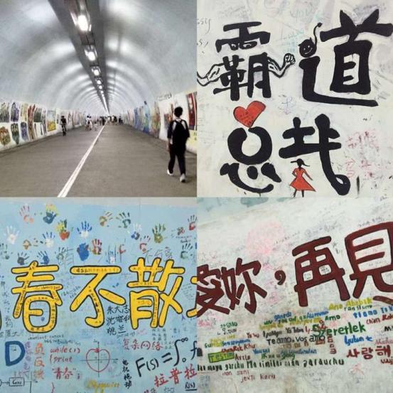 还找到了芙蓉隧道 好长好长的一条隧道 墙上都是涂鸦 有些地方是凹进去还有个咖啡店 挺好玩的 厦大学子还是很有才的 要么特别有想法和创意 也么特别写实 画他们的生活 美好愿望 爱的宣言 但是我没走到尽头 因为是厦大出口 还是只能出不能进的 所以我们就掉头继续逛了 不过蛮逛 因为想早点回去 养精蓄锐第二天好好玩~