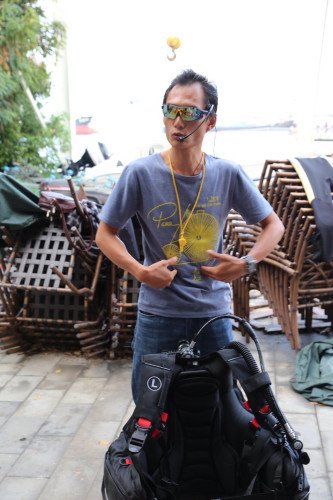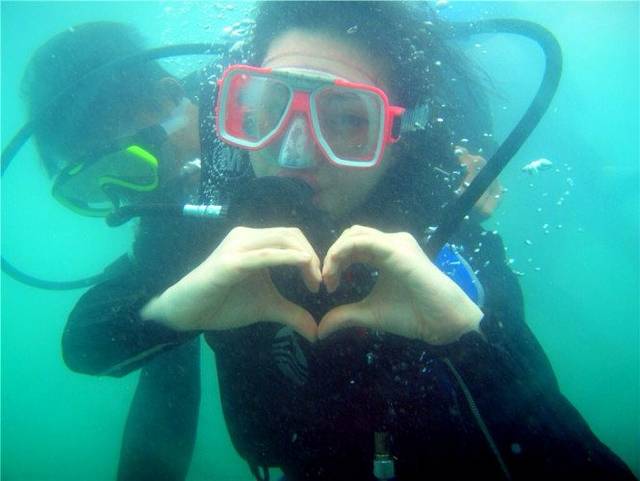教练在教我们潜水的相关手势和一些必备常识!其实很简单,想想一下在海底可以自由呼吸,看着漂亮的珊瑚和可爱的鱼儿。是不是也跃跃欲试呢?哈哈
