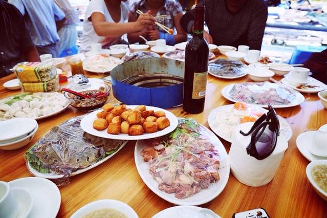 玩了一上午,饿的前胸贴后背的。中午是在蜈支洲岛后边海面上吃的海鲜打边炉!现在是坐船去吃饭,蜈支洲岛又名情人岛。距离三亚市东北部海岸2.7公里的海面上,是海南岛周围为数不多的有淡水资源和丰富植被的小岛,海水能见度极高。