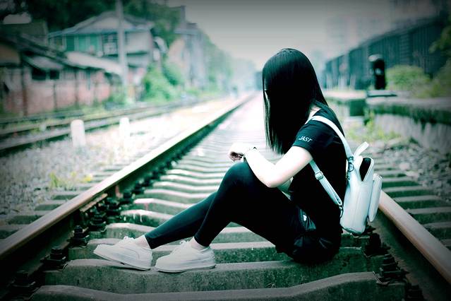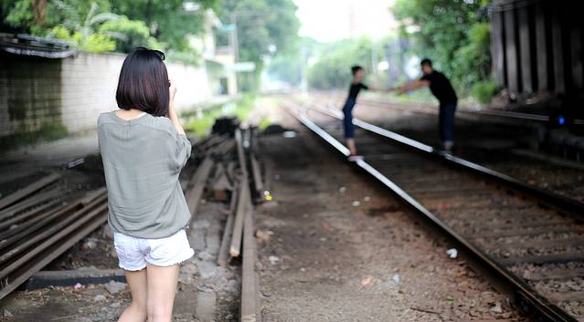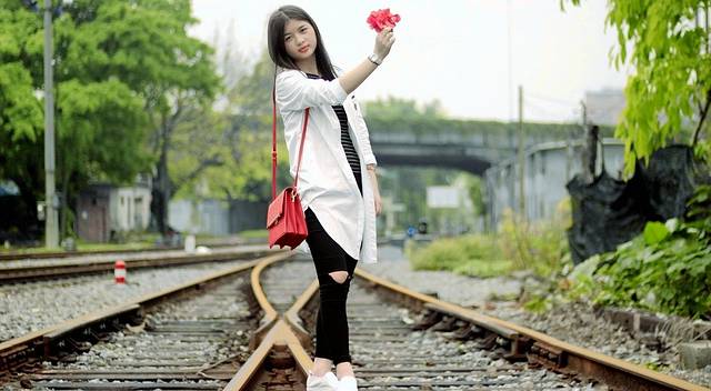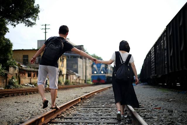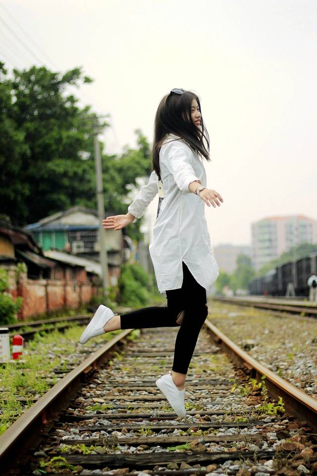 喜欢座在铁轨上的刹那间,喜欢看着穿着白色的连衣裙人在铁轨上行走着。