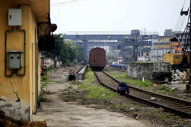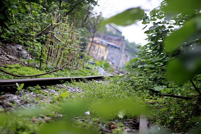 铁轨中夹杂着片片绿色,让这里的怀旧颜色不至于太单调,带出一种新的生机的感觉。
