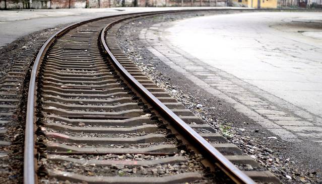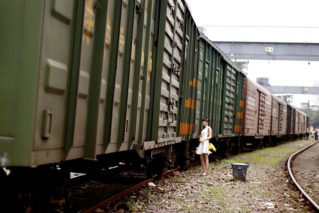 护栏外就是即将离别的火车,纵心有不舍,只能眼睁睁的看着火车远去