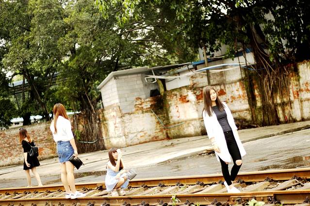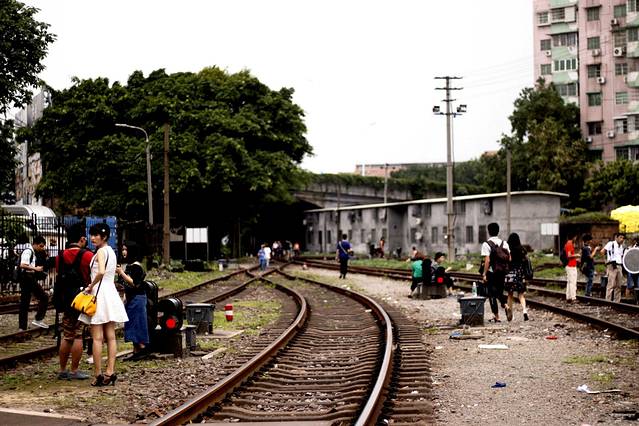 走到当年列车的铁轨上,除了偶尔经过几列货车以外,有时会有小孩子到铁轨上玩,有时会见到行色匆匆的路人,更多的时候你会发现有不少业余摄影发烧友会偷偷溜进车站拍照:这里现在已经成为广州地区业余摄影发烧友的拍摄热点,古朴的铁轨和站台符合很多“色友”的胃口