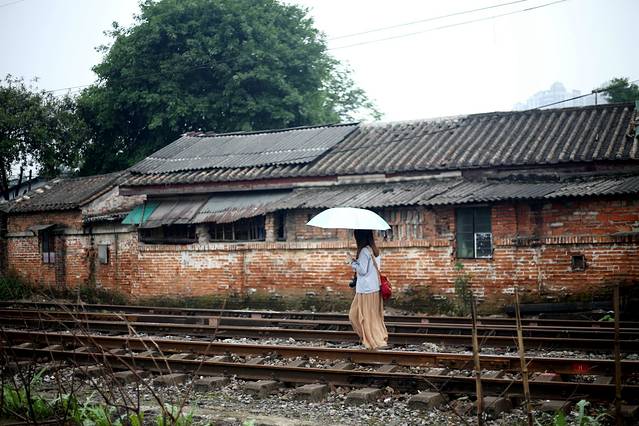车站周边还保留了许多宿舍和车间,大概是六、七十年代建造的,或许更早,有一部分还大致保留着原来的样子:杂草丛生的瓦房顶、斑驳的红砖墙、掉漆的木窗框和门板与锈迹斑驳的铁轨有一种和谐的美