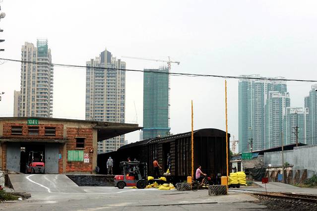 偶尔的货运停靠在石围塘装车下车,略显得有生气