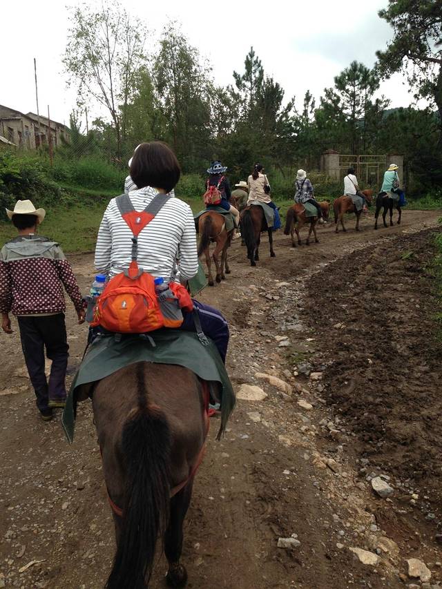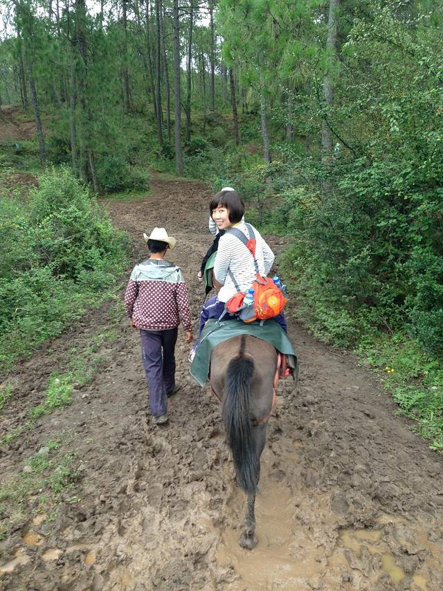 其中有一天去了茶马古道,就是骑马在大烂泥里走上坡,下坡,不过挺过瘾的,不像平时平路骑马,屁股很吃不消。马之间也有位置排列,超马了,马之间还打架,但他们用头,还好不用腿。但最要命的是马还要尿尿!随地大小便呐,有时马走快了,还要把泥点蹦到身上……