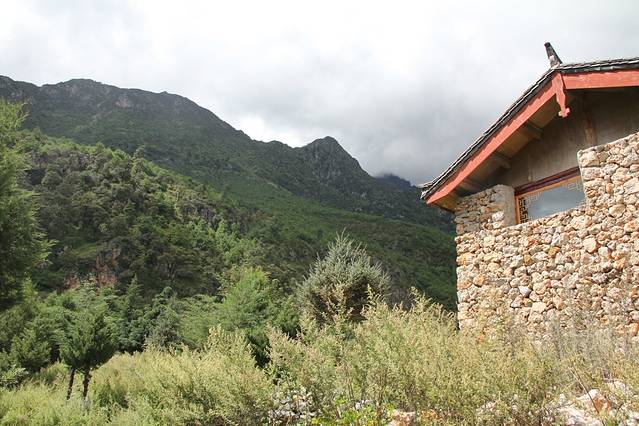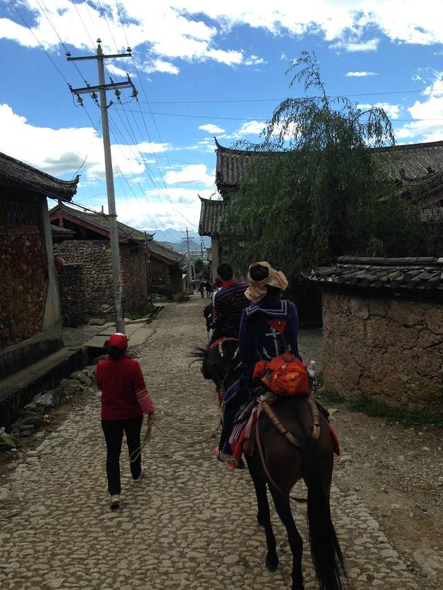 刚进去觉得挺好的,石头房子,清澈的湖~但走不远就不行了,骑马山上可真不行,屁股受不了啦。再上山,牵马的农民就抱怨,而且都是树,(同行的周大哥说不去了,老公也说不去了,其实要是我,一定会上去看看的!)合计合计不上了,呜呜……