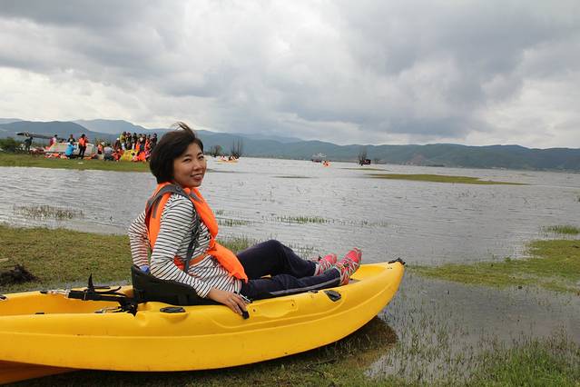 然后还有个游湖的项目,坐了一次船,什么湖忘记了,只知道是茶马古道附近的湖,坐船时有点冷,船上有一家子说要回去,我们就跟着回去了……