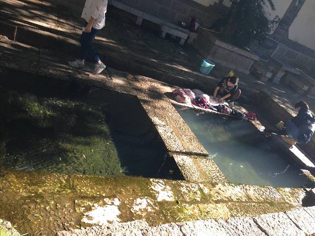 古城的水很清,他们很注意环保,第一个池子,只洗菜淘米