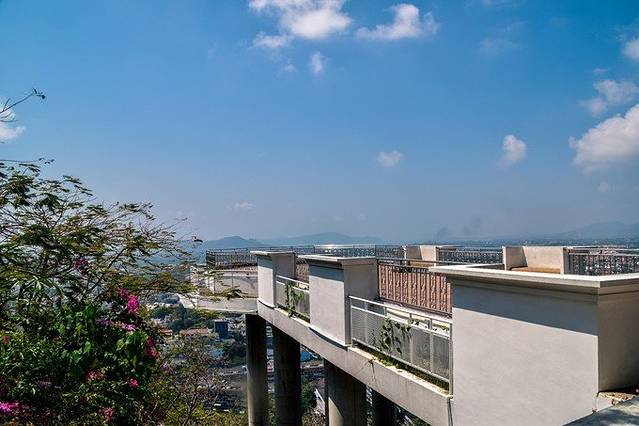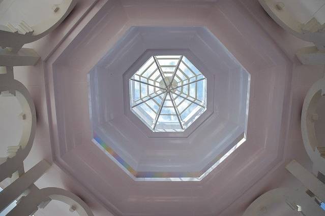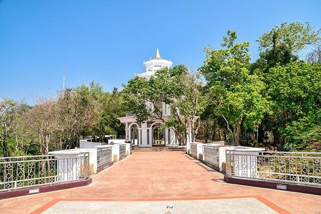 中意这个像教堂一样设计的观景点,四面都是镂空设计,在白天阳光照得里面透白——干净的风景。