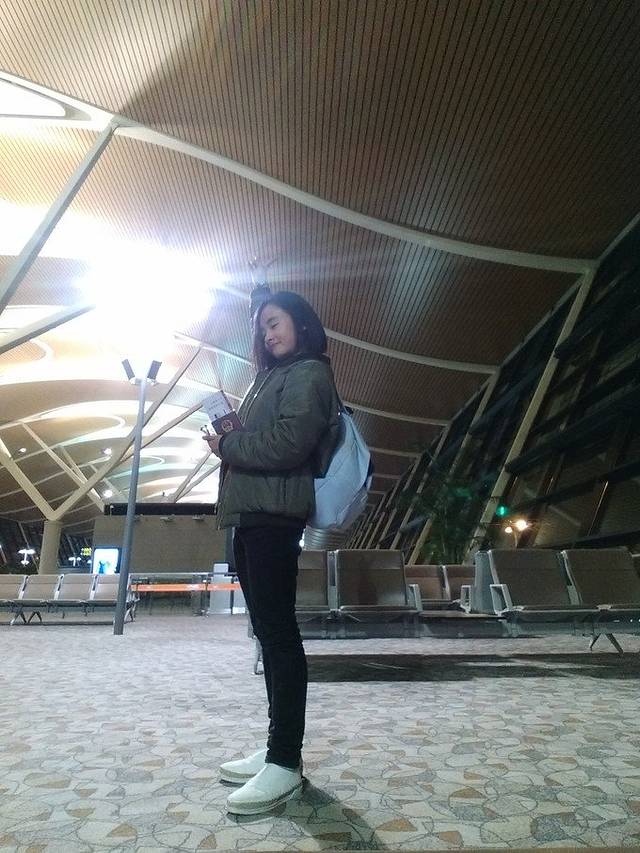 记得在机场挺无聊的,为了让自己清醒起来,就特别欢脱的自拍啊,蹦蹦跳跳的。