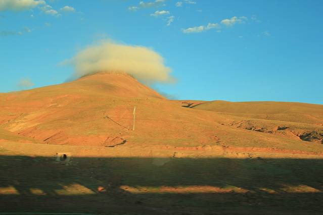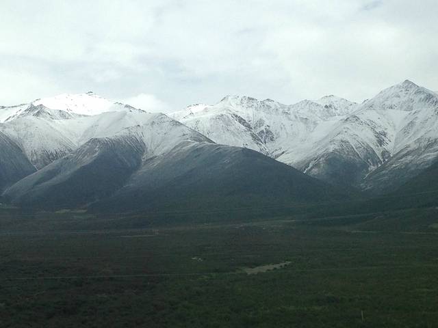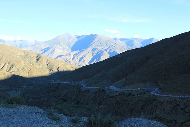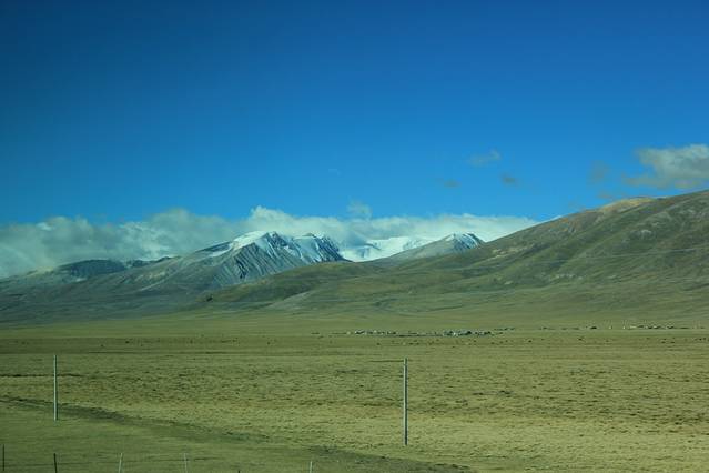 中途停顿一下,因为西藏这边限速比较严格。这里的景色比较平淡,只有薄薄积雪的一座雪山,是为后面美到爆的景色做铺垫。