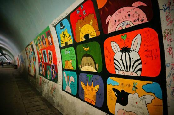 厦大的一大特色,长长的隧道两边都是校内学生的涂鸦。