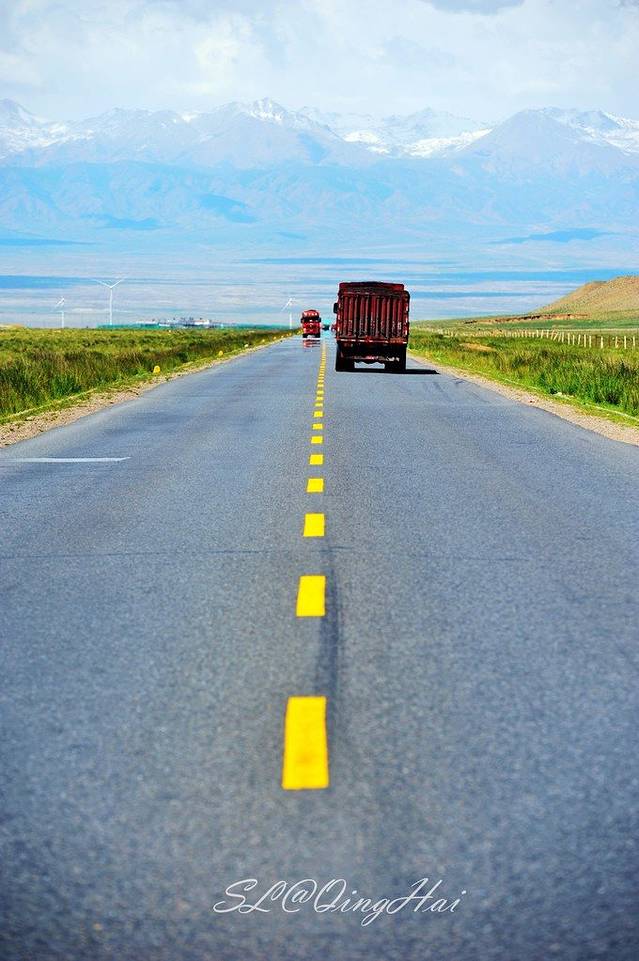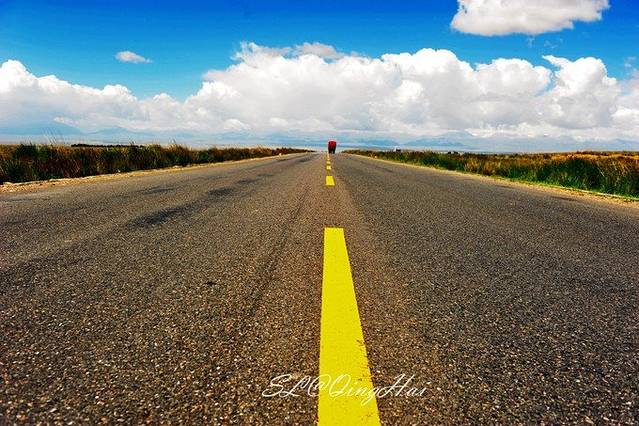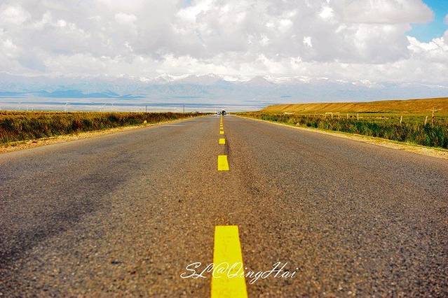 往盐湖开的路同样值得拍摄,笔直的公路,广阔的视野,远处连绵的山峰和雪山,有种西部大片的感觉,行在路上放佛就是这样的,它让你明白了在路上的定义和感受。