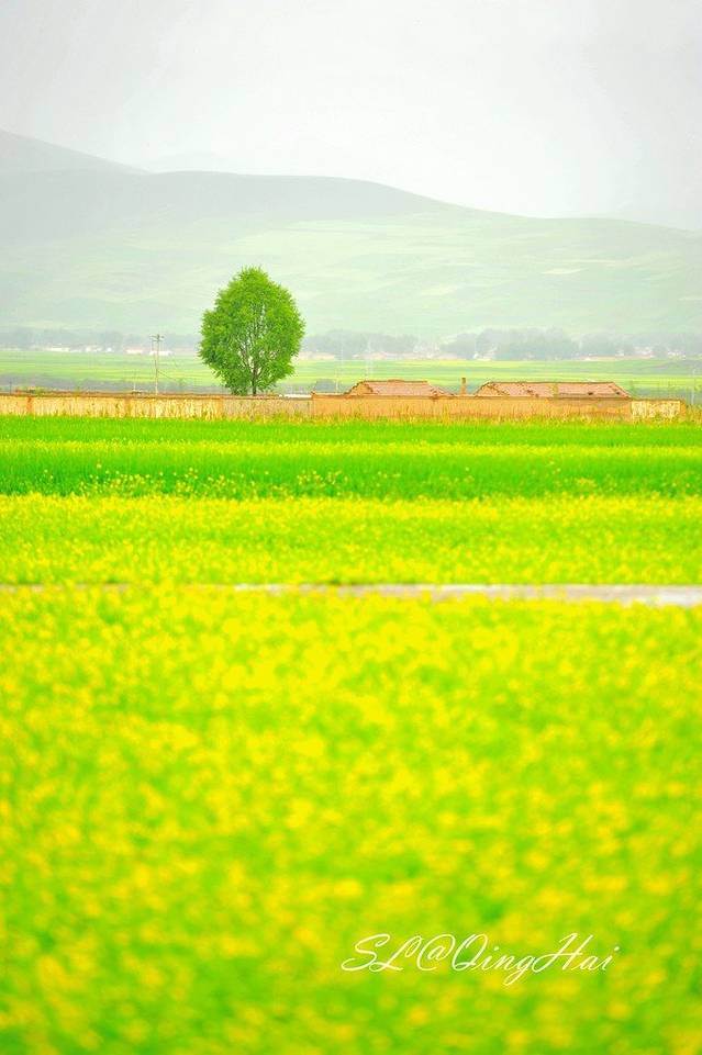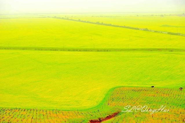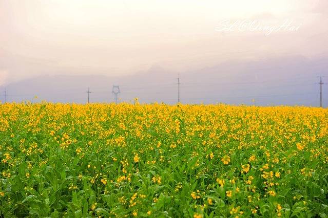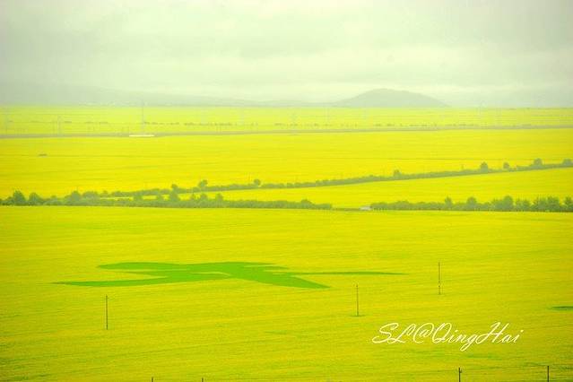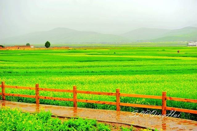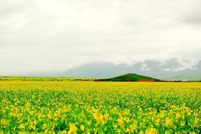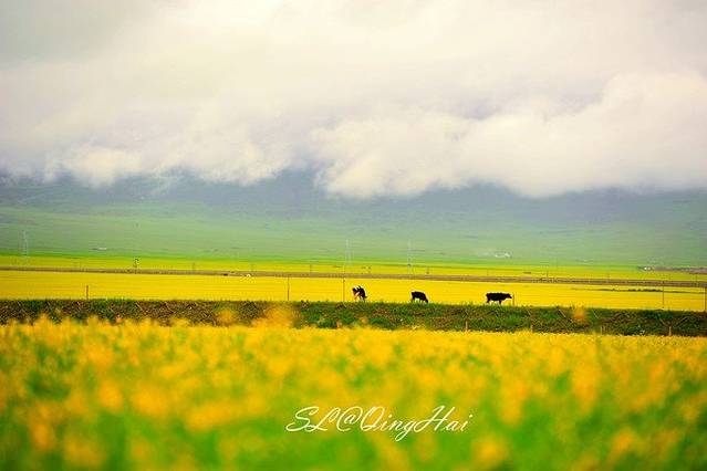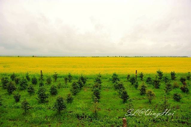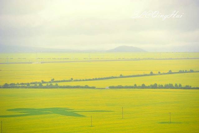 虽然天气不佳,但一到门源,路边便可以看到大片的油菜花,想想如果是大晴天,这里会是多么美。